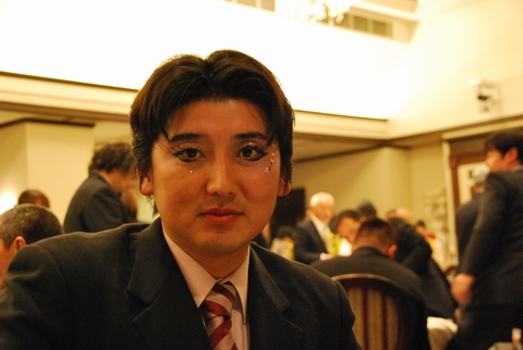 同級生のアーヤン(左)と、コーヒーを飲む亀谷靖之(右)・・・ん~・・・