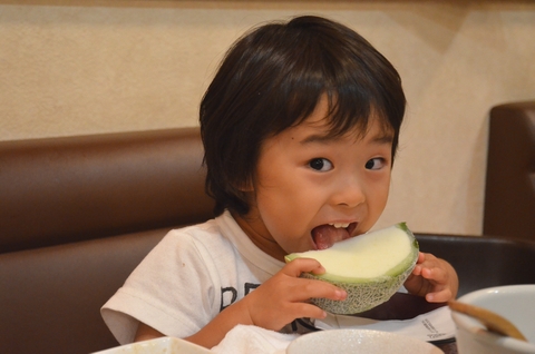 メロンアイスにかぶりつく息子、一人占めって感じでバクバク、ご馳走様でした♪