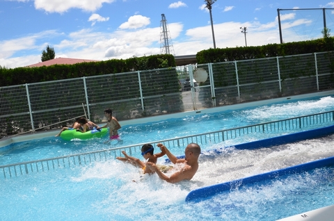 ウォータースライダーミニ版で楽しむ息子、ミニと言っても迫力満点です!!